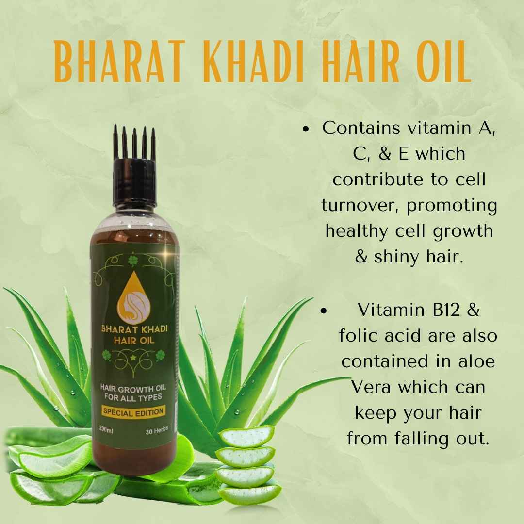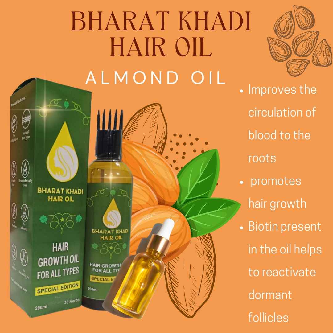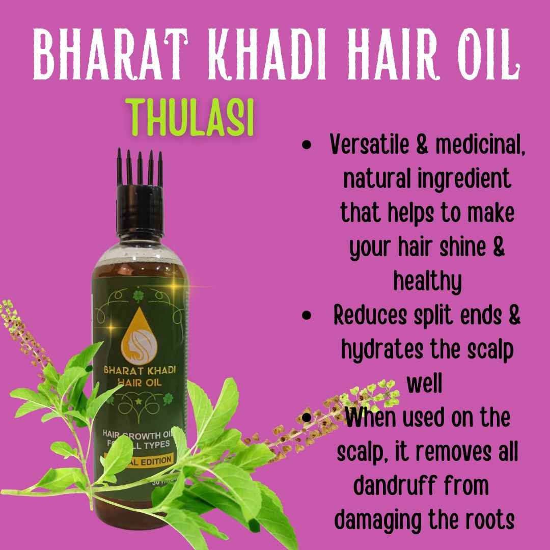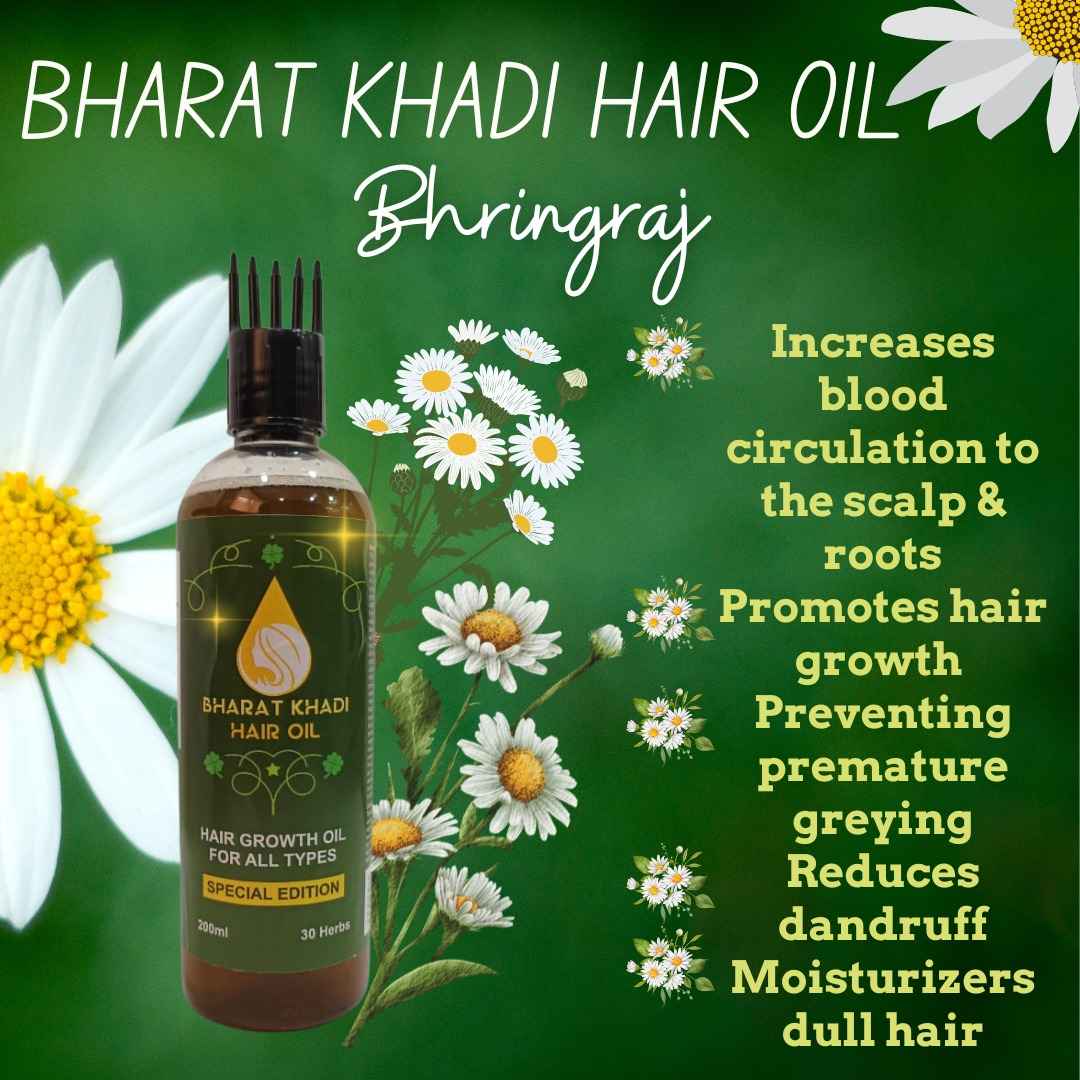 • Hair oil by Bharat Khadi Hair Oil is powered with Cold pressed coconut oil,Bhringraj, Amala & clove increases blood circulation to the scalp and roots, which promotes hair growth.