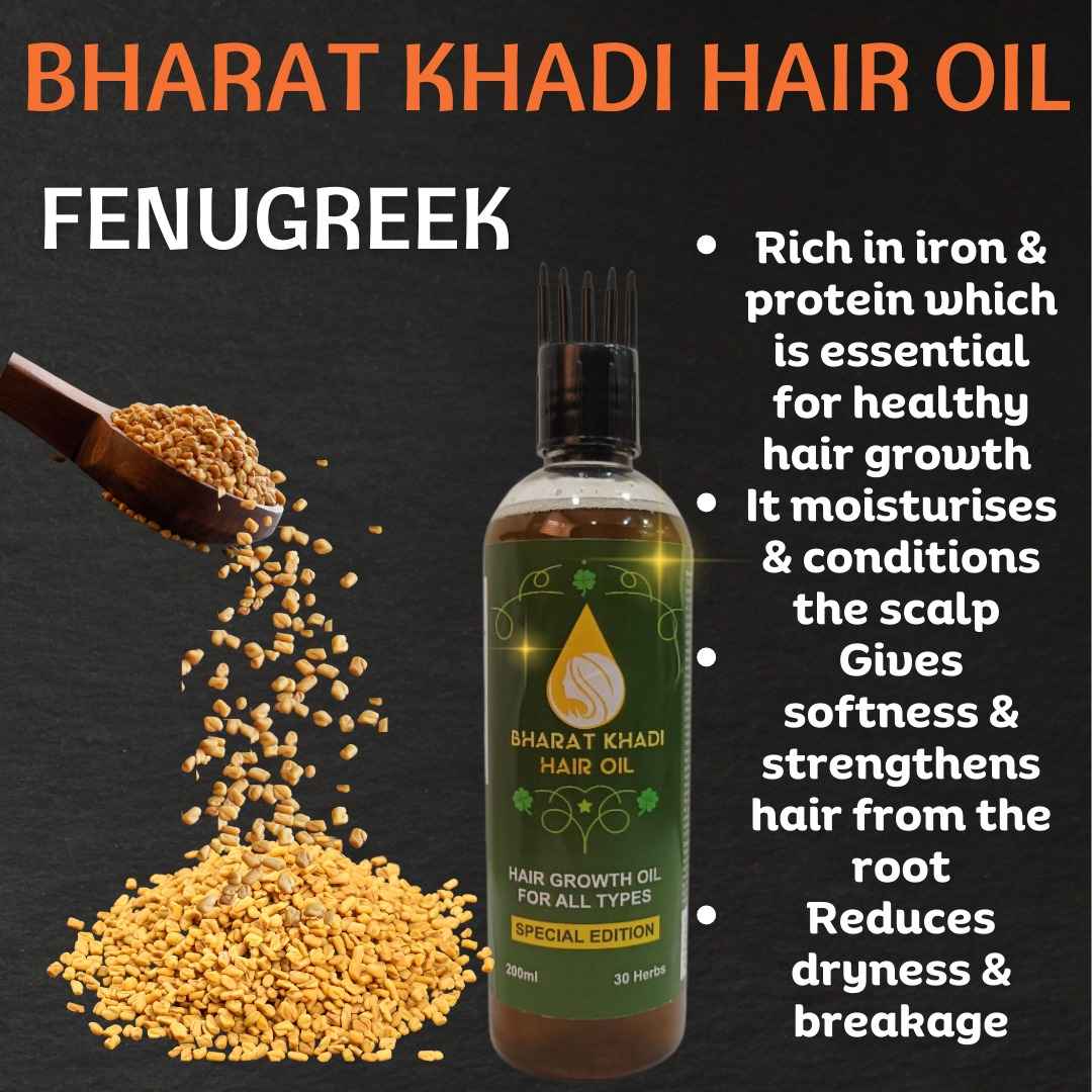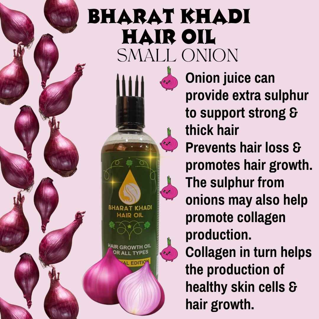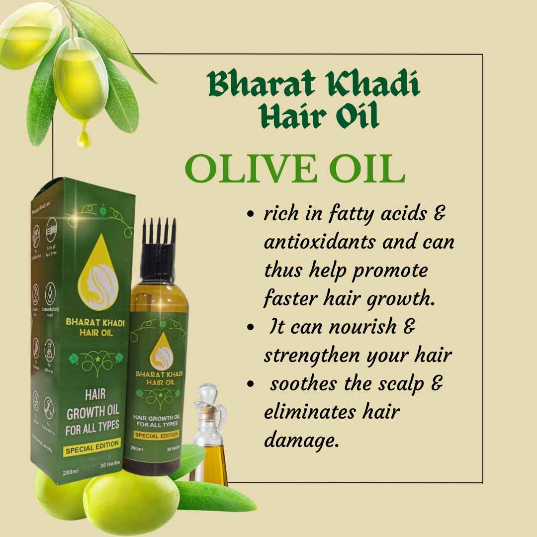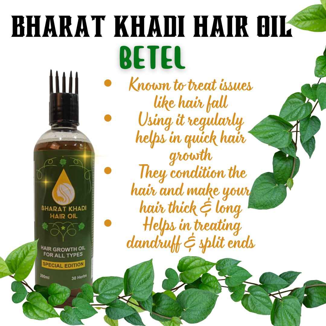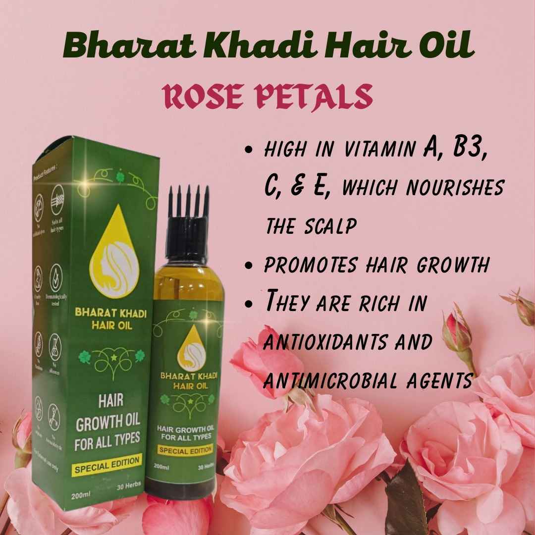 • Hair oil by Bharat Khadi Hair Oil is powered with Cold pressed coconut oil,Bhringraj, Amala & clove increases blood circulation to the scalp and roots, which promotes hair growth.