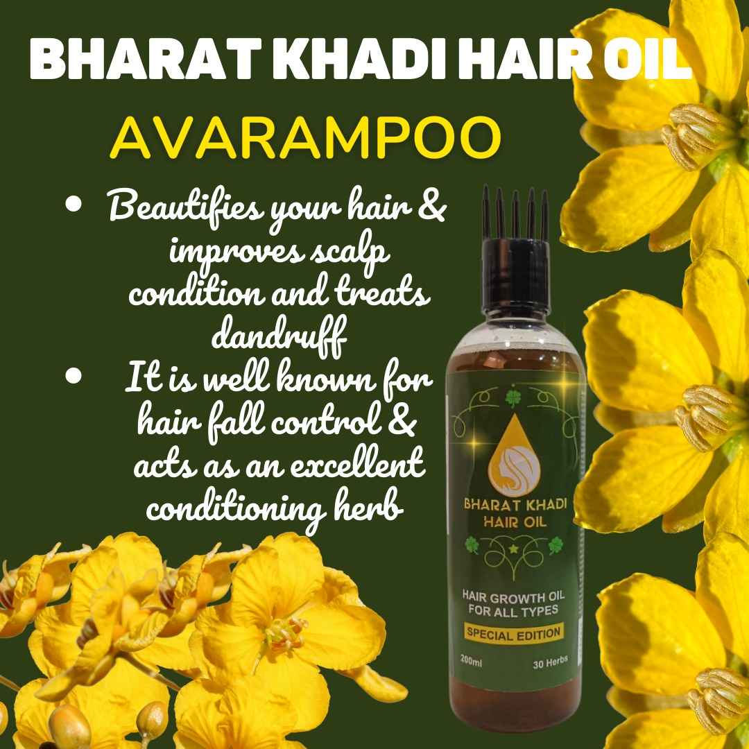 • Aloevera, red banana, jojoba oil & Avarampoo strengthening and conditioning the hair.
